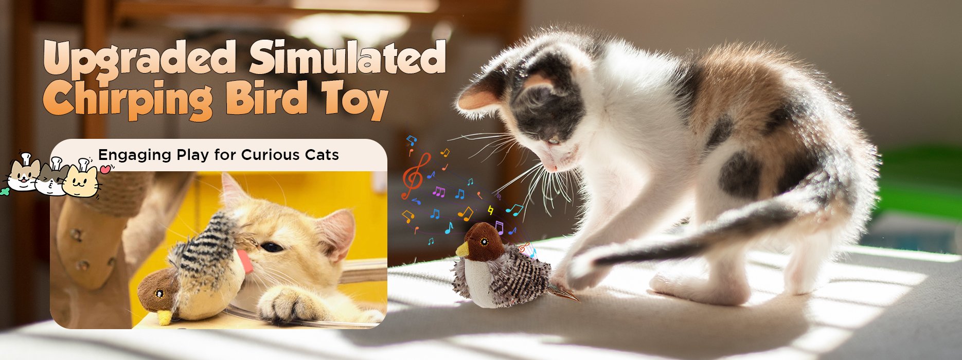 Equipped with high‑quality sound emulation and feathered tails, this toy produces lifelike bird calls and fluttering movements that trigger your cat’s hunting instinct instantly — making playtime irresistible.