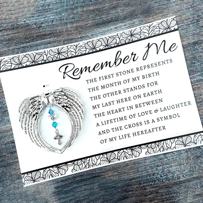 Created to honor love that never fades, this memorial keepsake offers a tender way to remember those who live forever in the heart. Featuring a handcrafted birthstone charm, it symbolizes personal connection and everlasting bonds. The elegant angel detail paired with a Heaven’s Light heart brings comfort, peace, and spiritual warmth during difficult moments. Each piece includes a thoughtfully written poem, adding emotional depth and meaning beyond words. A truly cherished remembrance gift, it offers solace, love, and quiet strength to those who hold memories close.
