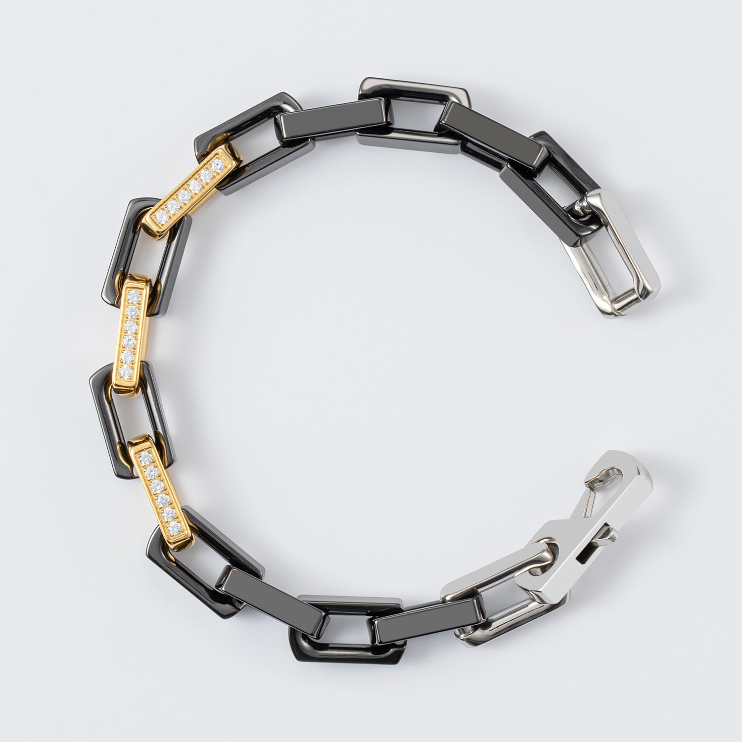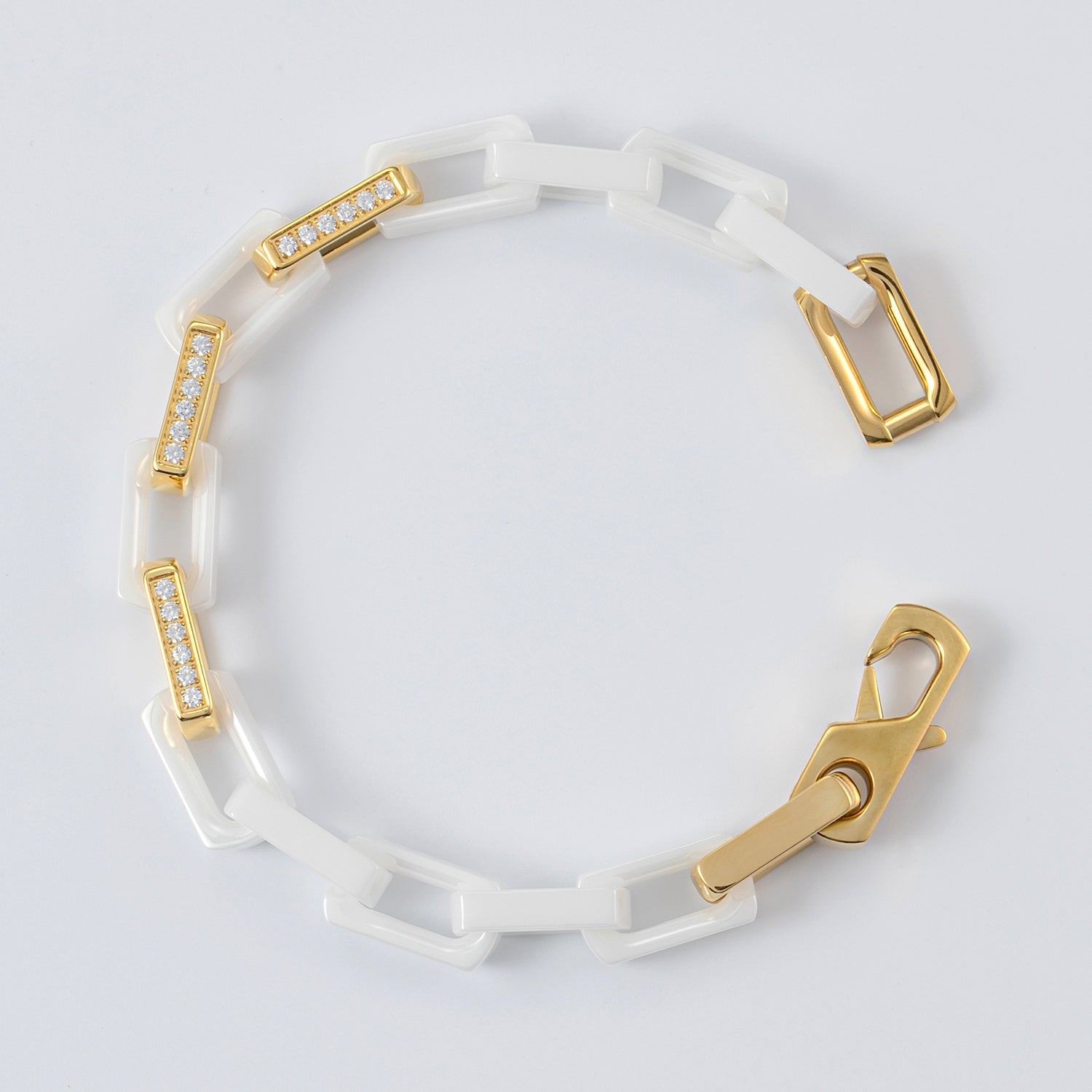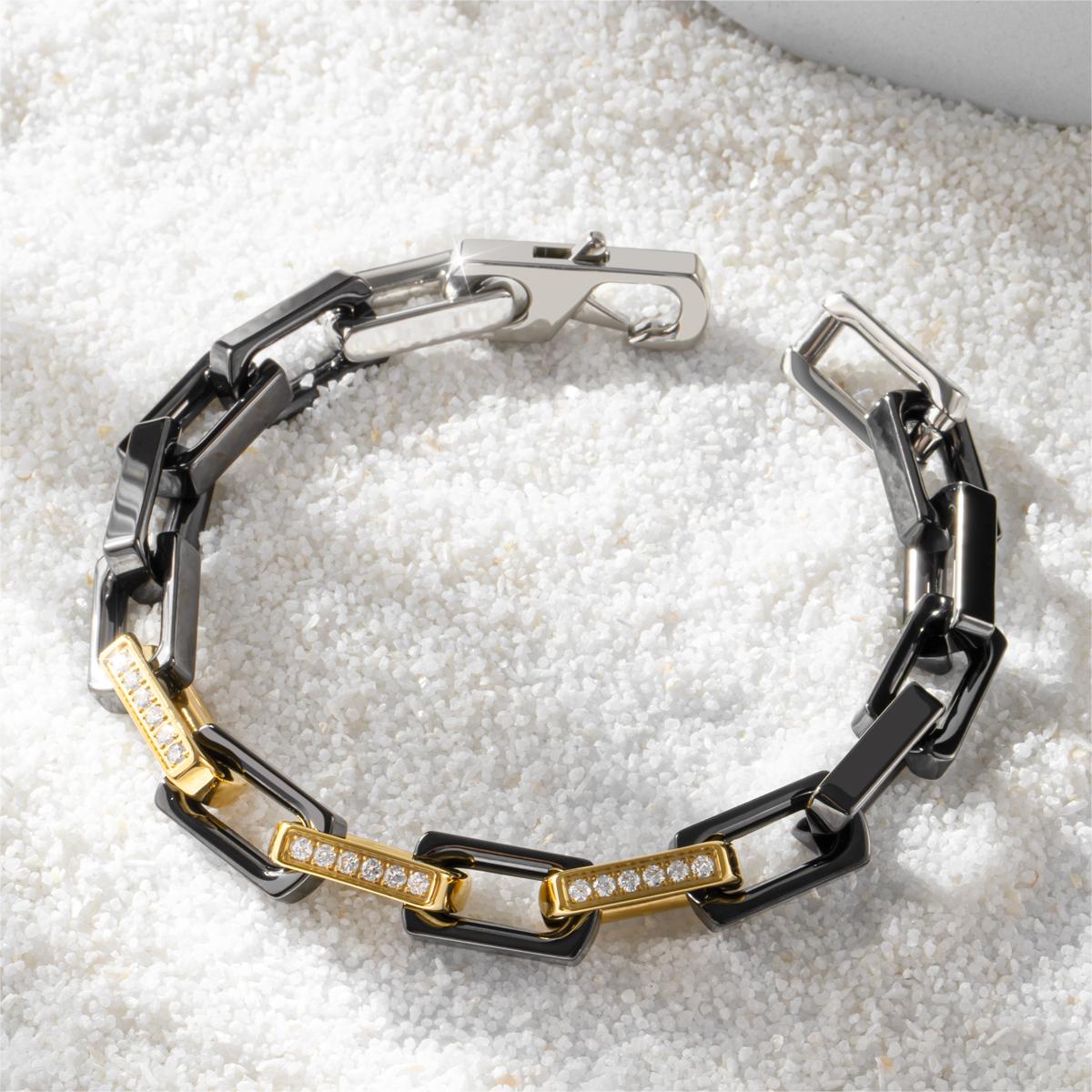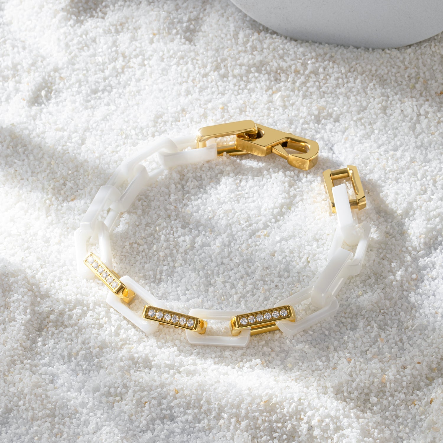 Each link is made from finest highland clay, shaped with zirconia for maximum strength and brilliance. Durable and luminous, the links retain their beauty and elegance without fading or discoloring.
