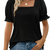StyleMuse – Square Neck Smocked Sleeve Casual Top