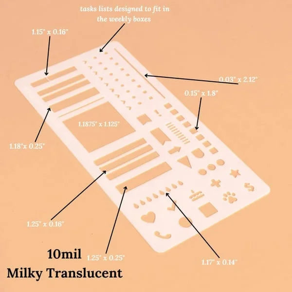 Our flexible Mylar stencils ensure every line, checkbox, and grid is neatly drawn. Create a flawless planner layout in seconds and enjoy the satisfaction of a polished, professional look.