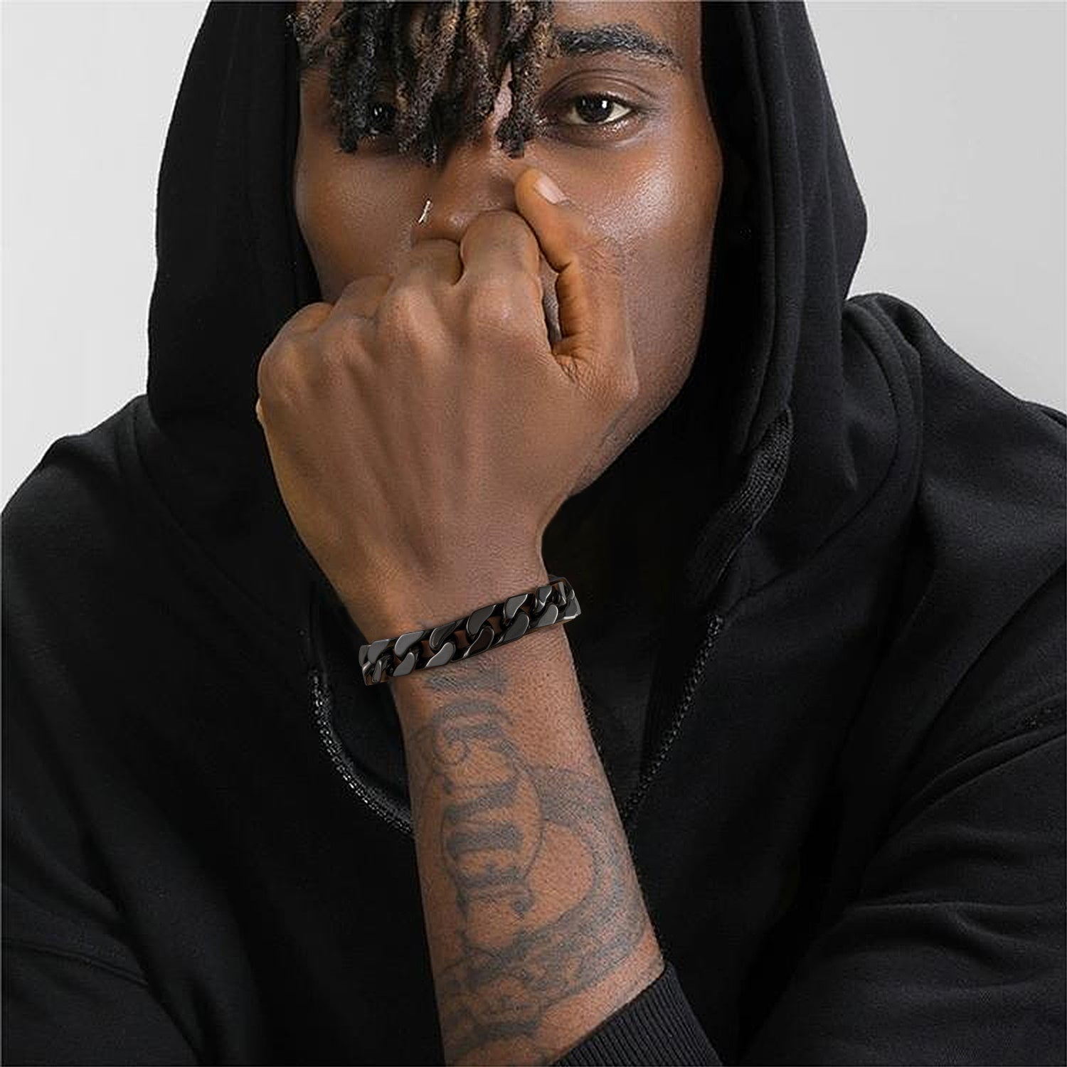 With its bold 13mm width and clean Cuban link style, this bracelet makes an instant statement. Perfect for elevating both casual and dressed-up looks.