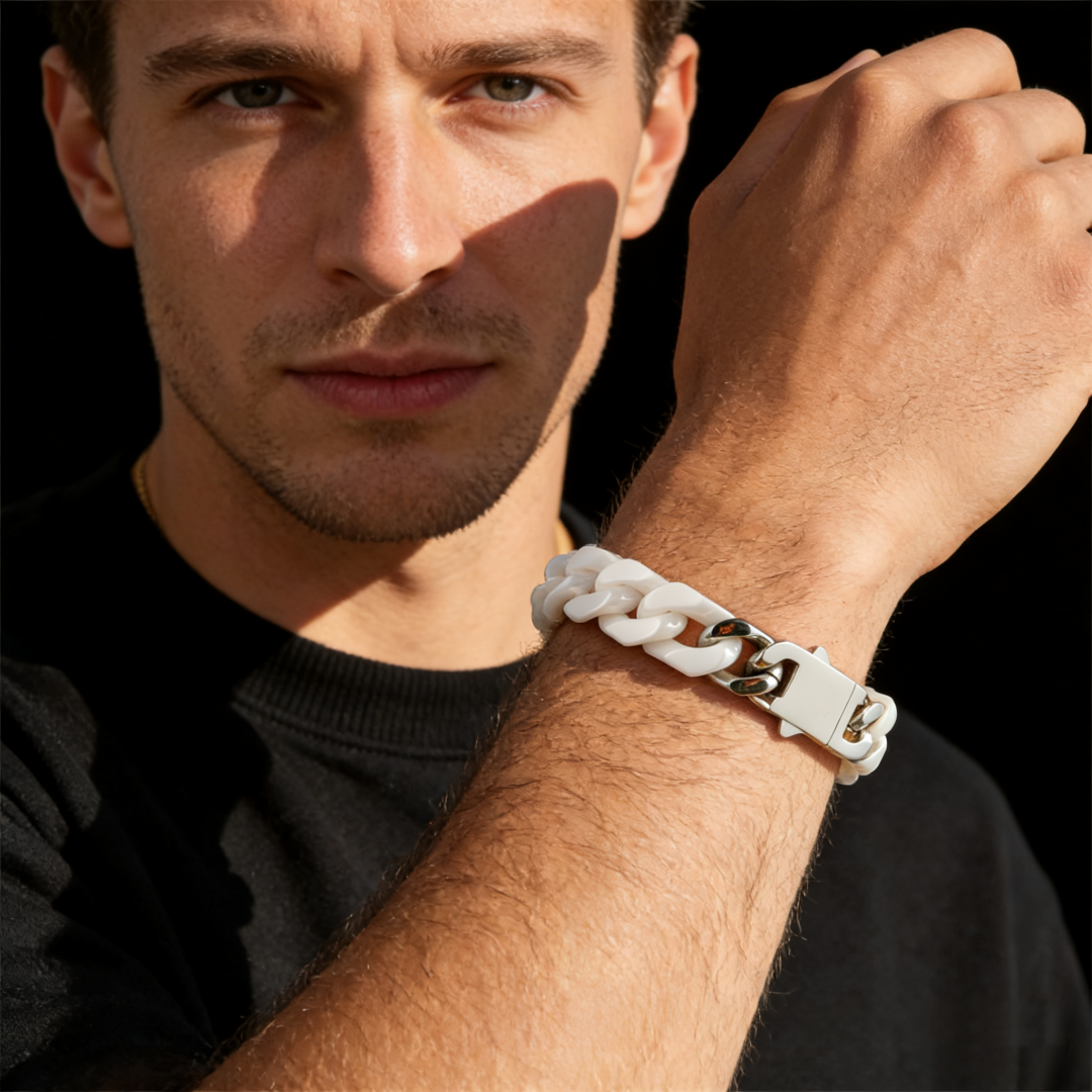 Upgrade your style with the Chunky Cuban Ceramic Bracelet, a refined evolution of classic ceramic jewelry. Designed with a thicker, snug fit, this statement piece delivers confidence, comfort, and durability in one sleek accessory. Crafted from premium ceramic, it’s naturally hypoallergenic, fade-resistant, and safe for daily wear—so you can look sharp without compromise.