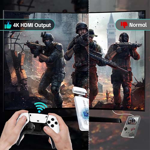 With 4K‑ready HDMI and 1080p output, your retro games get a fresh look — sharp pixels, vibrant colors, and smooth motion even on large TVs. No distortion, no fuzzy graphics.