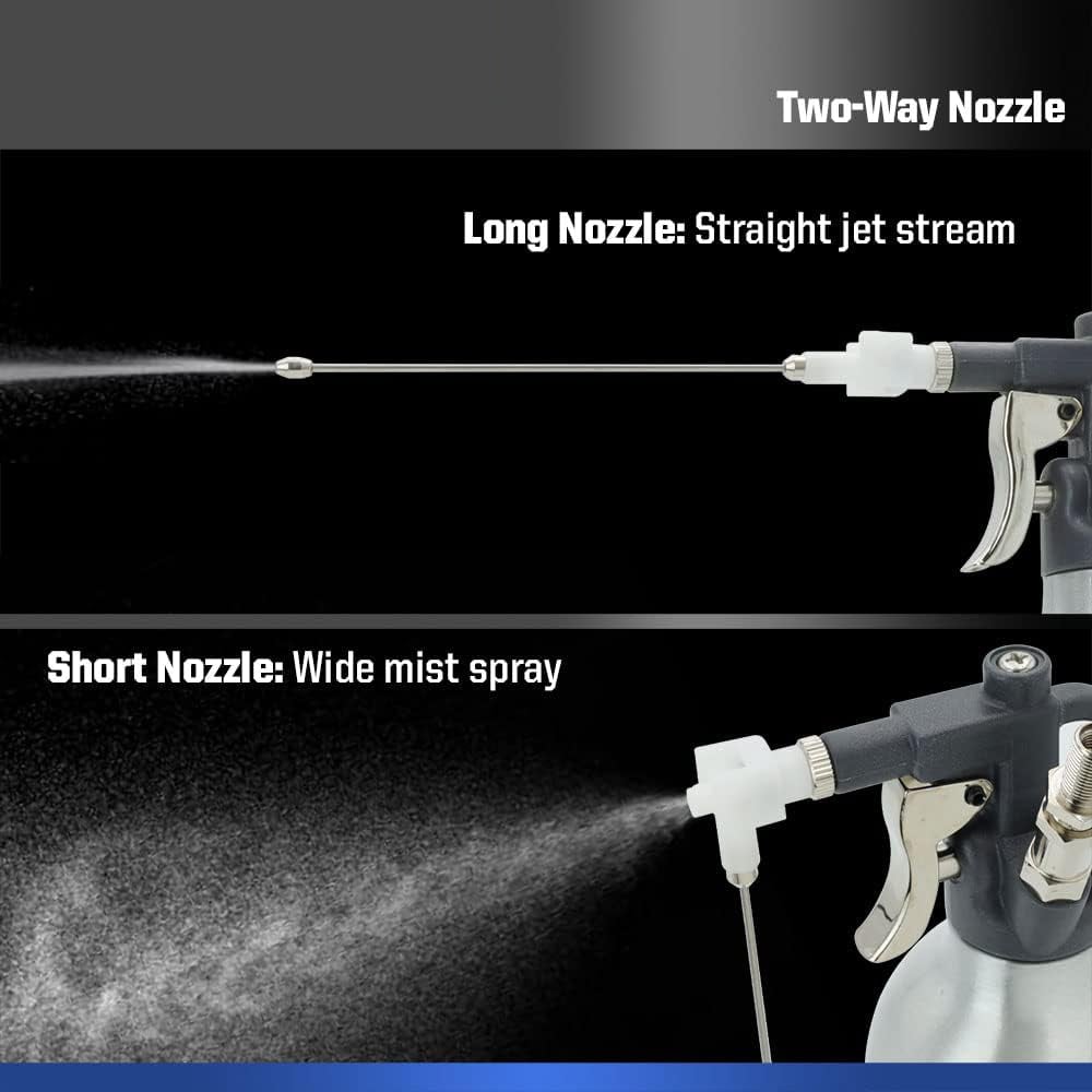 🔄 Upgraded Two-Way Nozzle: Long nozzle delivers a focused jet stream; short nozzle creates a wide mist spray. Threaded design ensures easy replacement and long-lasting durability.
