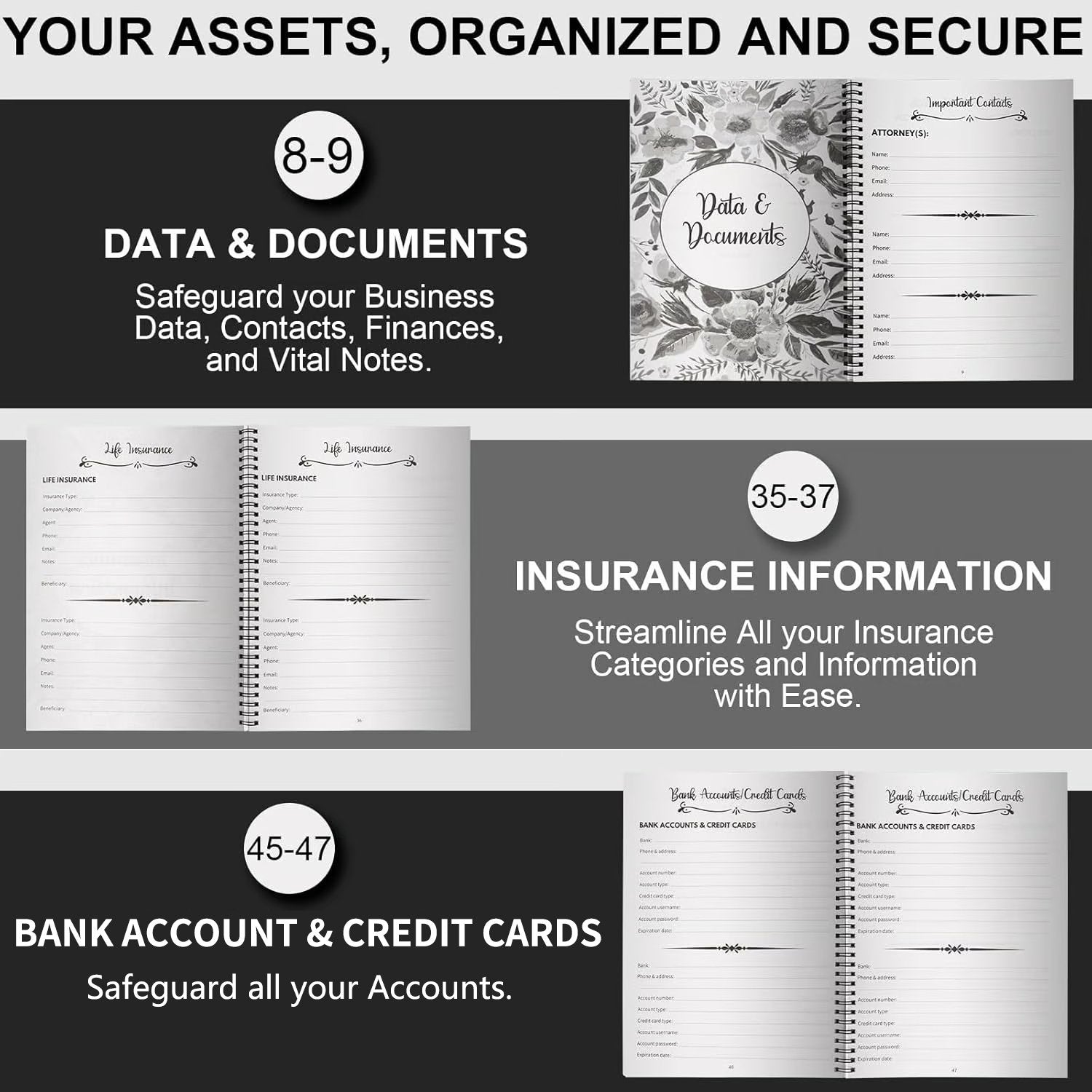 Easily organize personal details, finances, and responsibilities in one clearly structured place. From beneficiaries and pets to accounts and passwords, nothing important gets missed.