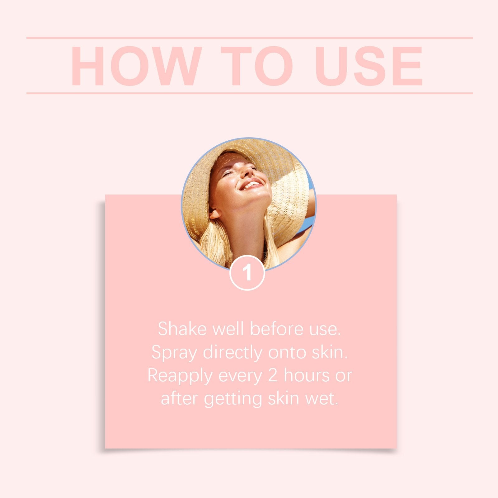 The non-aerosol, lightweight mist absorbs seamlessly with no white residue or greasy feel, suitable for all skin types.