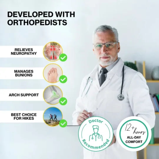 Supports healthier alignment to ease foot pain, knee strain, hip tension, and lower back discomfort. Promotes better posture by reducing joint load with every step.