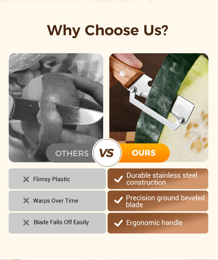 The innovative blade design ensures each stroke is clean and effortless, preventing waste and leaving you with perfectly peeled results.